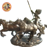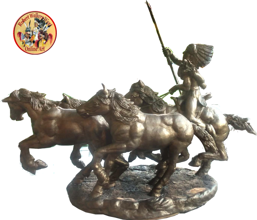 This Sculpture is of a warrior riding back into camp after stealing four horses. Maybe he will get an “Eagle Feather”.