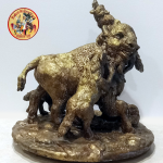 In this sculpture, considering the wolf being trampled, and the one being gored, it would appear that the outcome is far from certain.